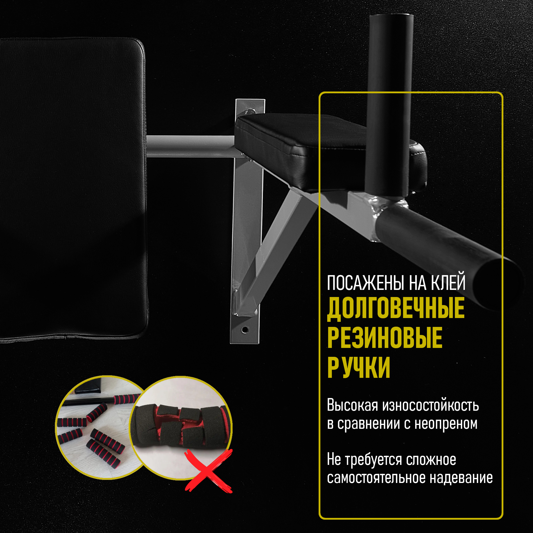 Перед тем, как купить Турник брусья-пресс, обратите внимание на мягкие подлокотники, которые выполнены из качественного надежного материала. Здесь также присутствуют специально удлиненные стойки для отжиманий, что позволит прорабатывать и другие группы мышц.