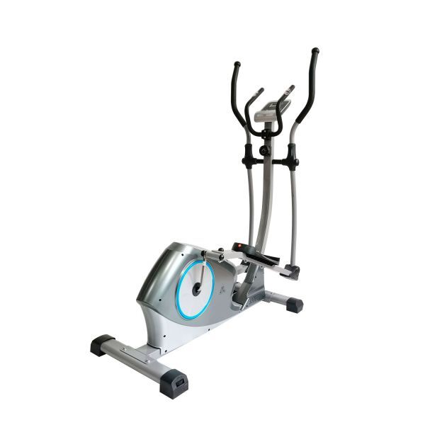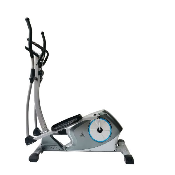 Среднегабаритный эллиптический тренажер для домашнего использования. Тренажер с высокоскоростным маховиком и магнитной системой нагружения. Механическая регулировка нагрузки, 8 фиксируемых положений нагрузки с помощью удобной ручки на стойке тренажера.