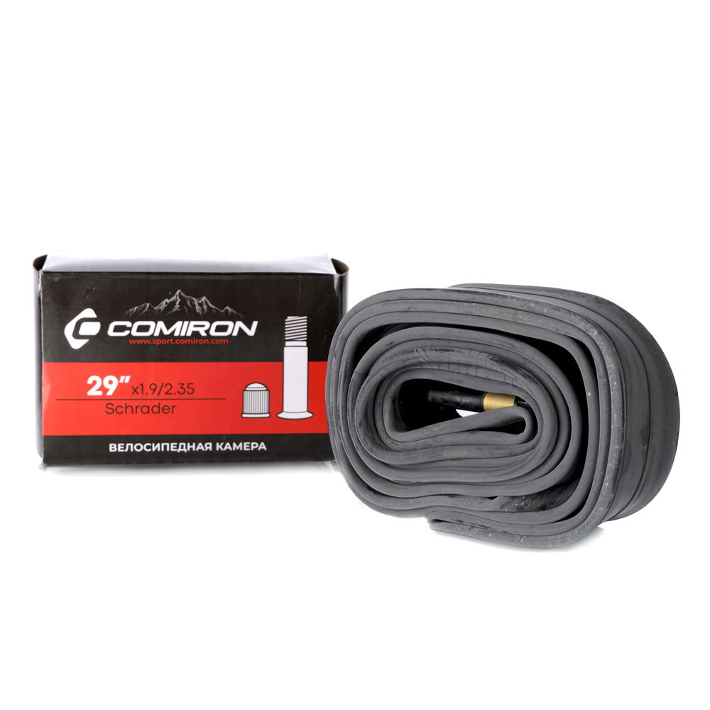Камера для велосипеда 29 X1.9/2.35. Бутиловая резина COMIRON. Автониппель A/V Schrader длина 45мм вес 245g. Бутиловая велосипедная камера COMIRON 29" X1.9/2.35.