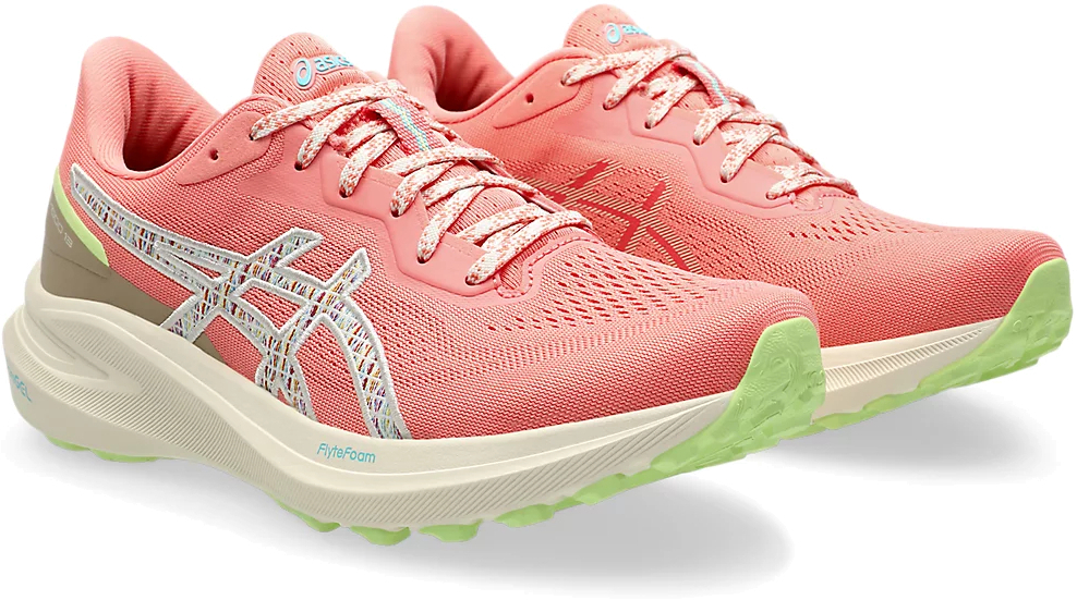 Кроссовки женские для бега GT-1000 13 NATURE BATHING TR с большей поддержкой и повышенной амортизацией. Их цветовая гамма черпает вдохновение из элементов тропического морского пейзажа.