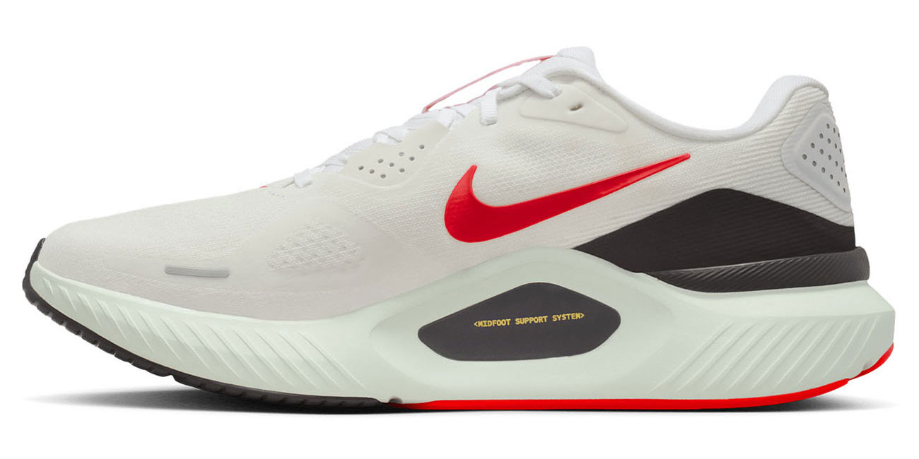Поддерживающая амортизация обеспечивает оптимальную устойчивость, обеспечивая ощущение стабильности. Новая промежуточная подошва из пеноматериала ReactX обеспечивает более мягкий и отзывчивый бег. Nike удалил подушку Air Zoom в передней части стопы и добавил более мягкую дутую резину для более плавных переходов. Более высококачественные и мягкие материалы обивки на пятке и язычке улучшают комфорт и безопасность. Система поддержки средней части стопы в виде накладок и ремешка, расположенная в медиальной области, эффективно поддерживает свод стопы.