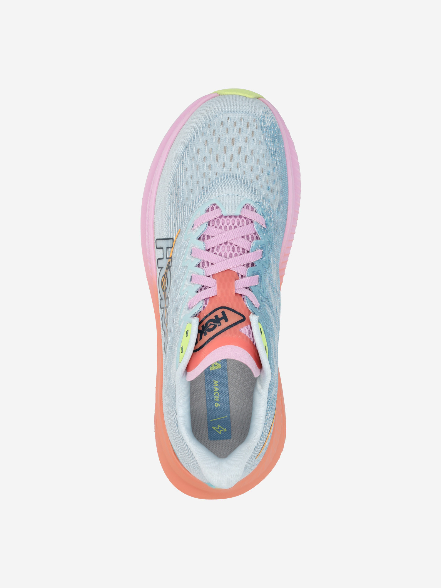Женские кроссовки HOKA Mach 6 — лёгкие кроссовки для бега по асфальту, созданные для ежедневных тренировок, темповых пробежек и регулярного бега. Модель сочетает небольшой вес, упругую амортизацию и плавный перекат, помогая поддерживать комфорт и динамику на тренировках.
