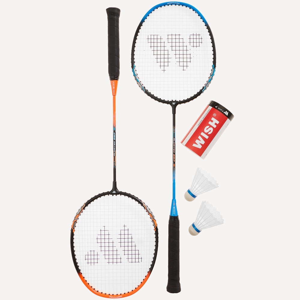 Набор ракеток для бадминтона WISH состоит из двух ракеток изометрической формы, двух пластиковых воланов и чехла из ПВХ для переноски и хранения. Набор был разработан для бадминтонистов-любителей, которым требуется максимально простая в игре и маневренная ракетка. Широкая алюминиевая рама обеспечивает уверенную и комфортную игру, а оптимальное для начинающих игроков натяжение струн позволяет выполнять сильные удары без лишних усилий. В комплекте к ракеткам для бадминтона идет полноразмерный чехол с логотипом бренда.