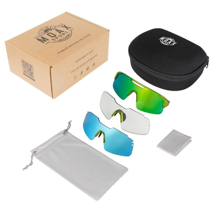 Спортивные солнцезащитные очки Progress с 3 сменными линзами Revo в комплекте (зеленая, синяя, фотохром).