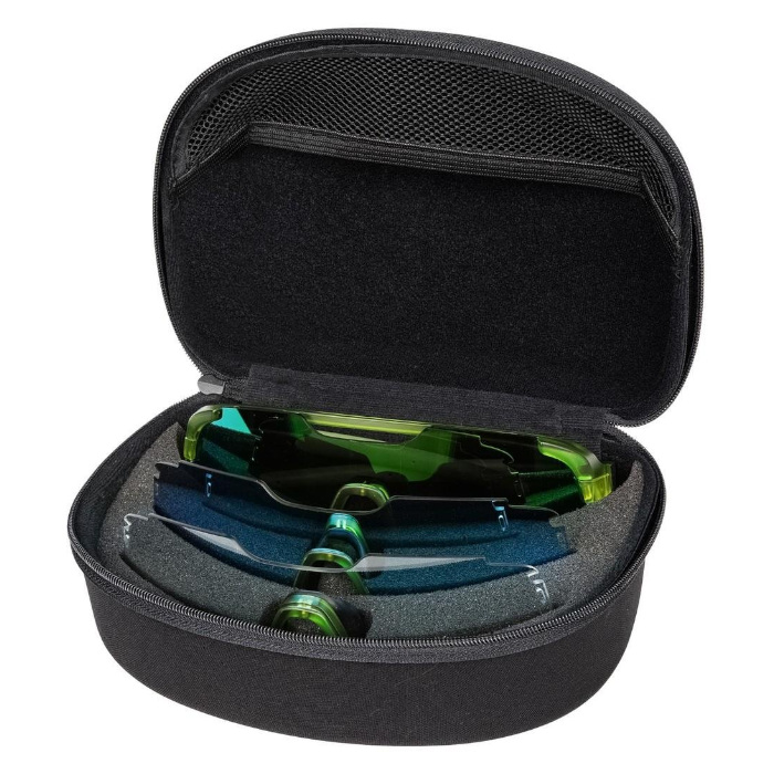 Комплектация: оправа, 2 сменные линзы REVO с зеркальным покрытием; 1 линза с фотохромом, твердый защитный кейс, салфетка из микрофибры, мягкий чехол для переноски из микрофибры.