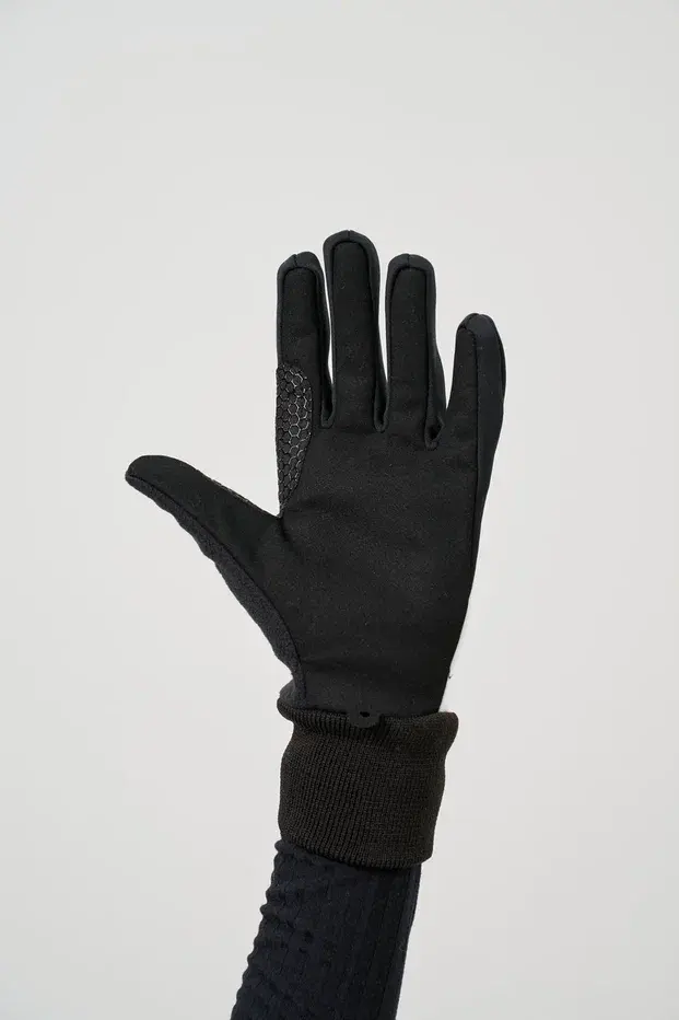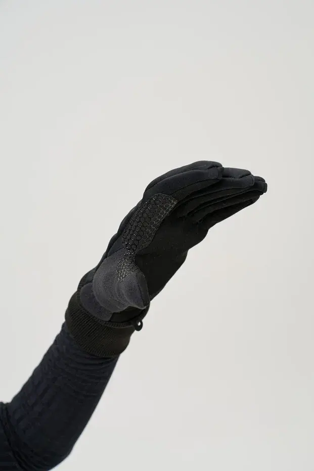 На большом пальце усиление с внутренней и внешней стороны и флисовая поверхность. Запястье фиксируется на манжету.