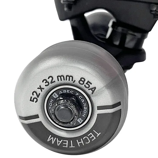 Подвеска на ALU траках из сплава 6061-Т6 с профилем Seagull (чайка) получила «золотой размер» в 5”, мягкие бушинги 85А, и колёса 52х32мм с той же жёсткостью 85А для наилучшей амортизации и предсказуемого сцепления. Скейт укомплектован скоростными подшипниками 608 ABEC-7 из высокоуглеродистой стали.