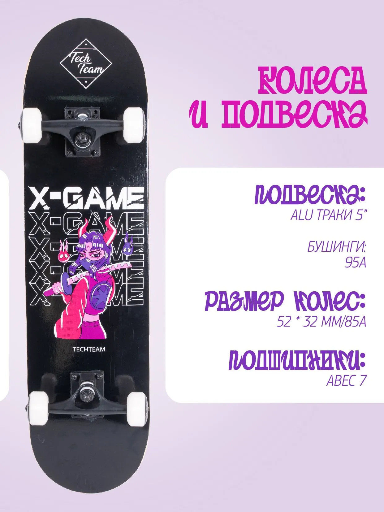 Tech Team X-Game – трюковый скейтборд стандартного размера с классической декой шириной 8”.