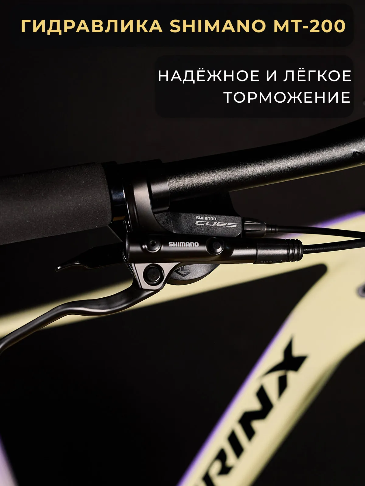 На модели установлена трансмиссия SHIMANO CUES SL-U4000 на 18 скоростей. Гидравлические тормоза SHIMANO BR-MT200 позволят моментально остановить велосипед даже на большой скорости, работают безотказно, при любых погодных условиях. Рубашки тросиков запасованы в раму для улучшения аэродинамики и защиты от повреждений. Колеса 29 дюймов с широким протектором обеспечат хорошую маневренность и скорость.
