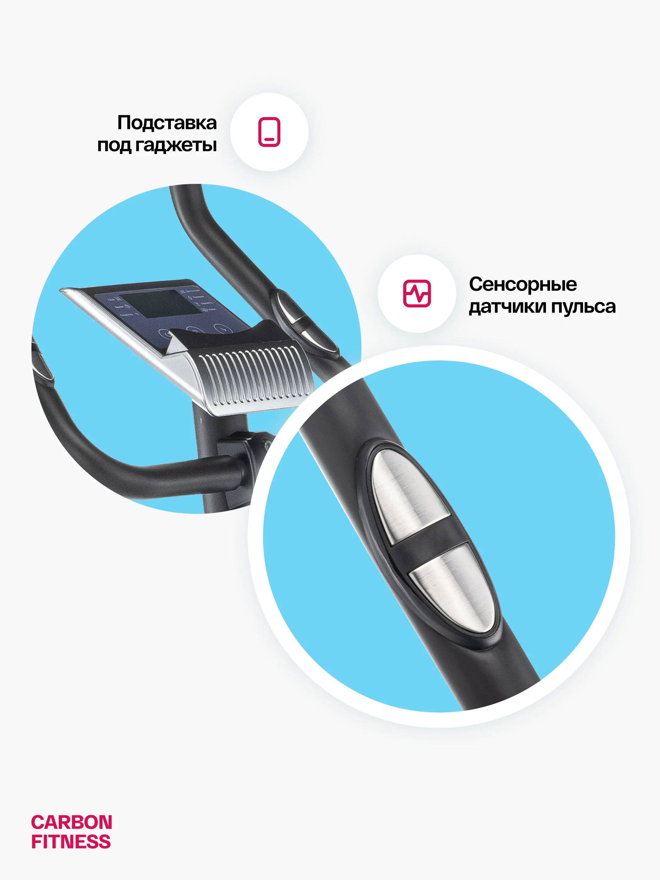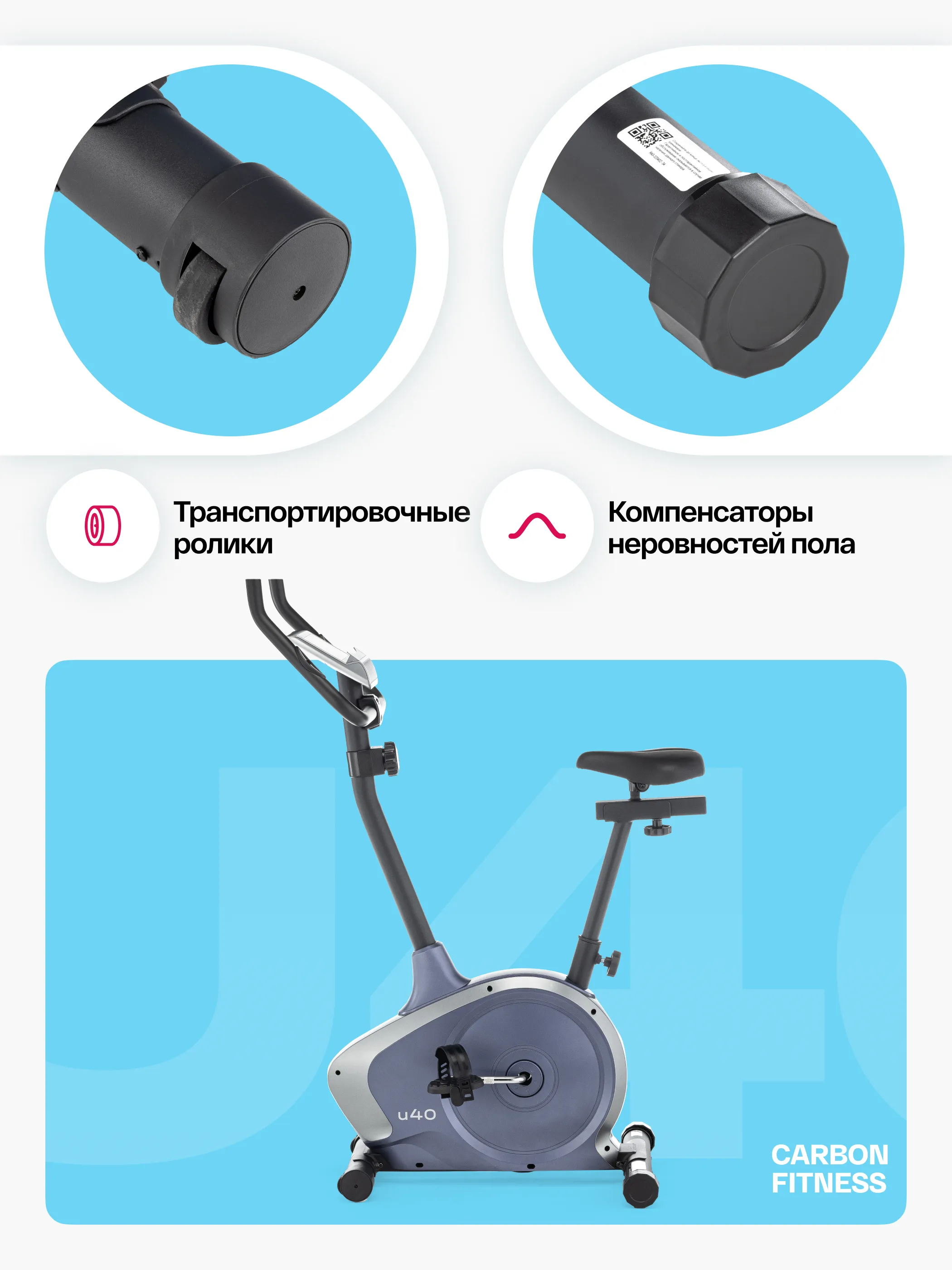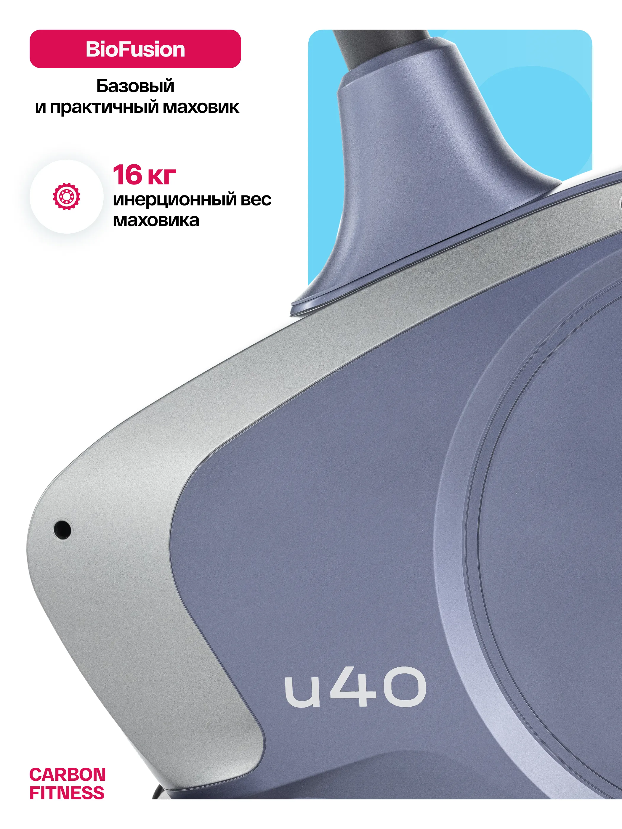 Велотренажер CARBON FITNESS U40 с вертикальной посадкой – это идеальный выбор для домашних тренировок. Он подходит как для начинающих, так и для любителей фитнеса, предлагая базовые, но функциональные характеристики, обеспечивающие высокую эффективность занятий. CARBON FITNESS U40 оснащен магнитной системой нагружения optiSTEP™ с 8 уровнями нагрузки и маховиком BioFusion с инерционным весом 16 кг, которые обеспечивают плавные и эффективные движения во время тренировки, а также возможность настроить процесс на любой уровень подготовки. Это делает тренажер идеальным не только для начинающих, но и для тех, кто уже имеет определенный опыт в тренировках. Вес велотренажера составляет 22,5 кг, а само оборудование выдерживает вес пользователя до 120 кг, что делает его подходящим для широкого круга любителей активных физических нагрузок. Анатомическое сиденье U40 регулируется в двух плоскостях (вертикально и горизонтально), обеспечивая удобство и правильную посадку во время тренировки. Антискользящие педали с регулируемыми ремешками гарантируют надежное сцепление и безопасность во время тренировки. Транспортировочные ролики и компенсаторы неровностей пола облегчают перемещение и установку оборудования в нужном месте. Габариты велотренажера U40 составляют: 96*44,5*140 см. Простая и информативная LCD-консоль тренажера отображает основные показатели тренировки, такие как время, скорость, дистанция, калории, пульс и одометр. Такая дружелюбная и понятная интерфейсная панель помогает отслеживать прогресс и достигать поставленных целей. Вертикальные тренажеры, вроде U40, являются одними из лучших выборов для домашних тренировок. Их компактные размеры позволяют установить их в любом помещении без особых проблем. Благодаря отсутствию необходимости подключения к сети, вы можете разместить тренажер где угодно, что делает его удобным и доступным для использования даже перед телевизором или в спальне. Ключевые преимущества CARBON FITNESS U40: